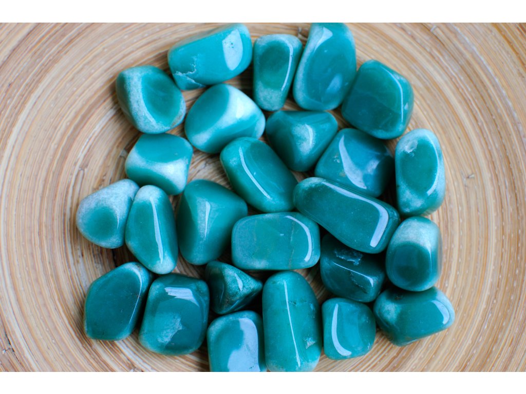 Unikátnost kamene: Tromlovaný avanturin se pyšní vysokým leskem a sytě zelenou barvou. Kromě toho si kámen zachovává i jemný třpyt způsobený rozptýlenými šupinkami slídy nebo hematitu.