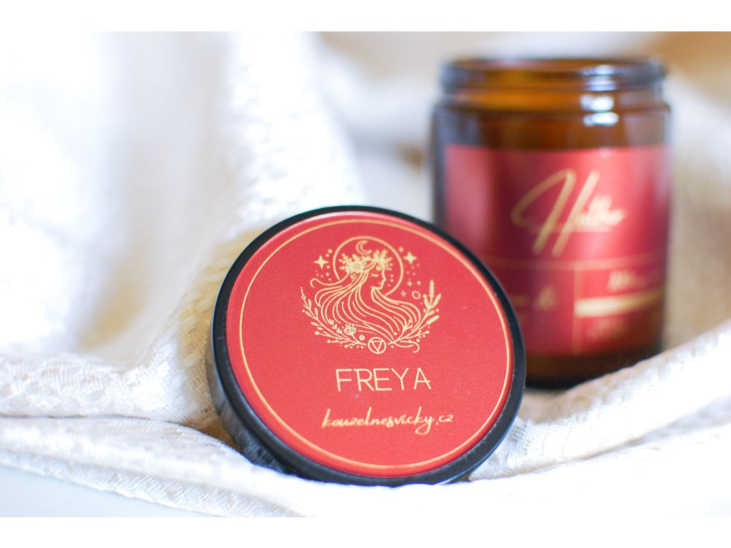 120 ml ručně vyrobená svíčka inspirována Bohyní Hathor - bohyní lásky, radosti, hudby, tance, mateřství, ale také ochránkyní žen, plodnosti a dokonce i mrtvých.