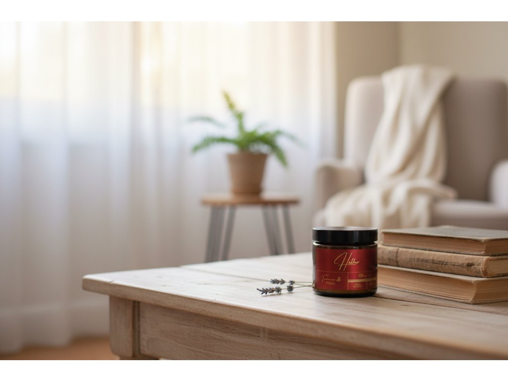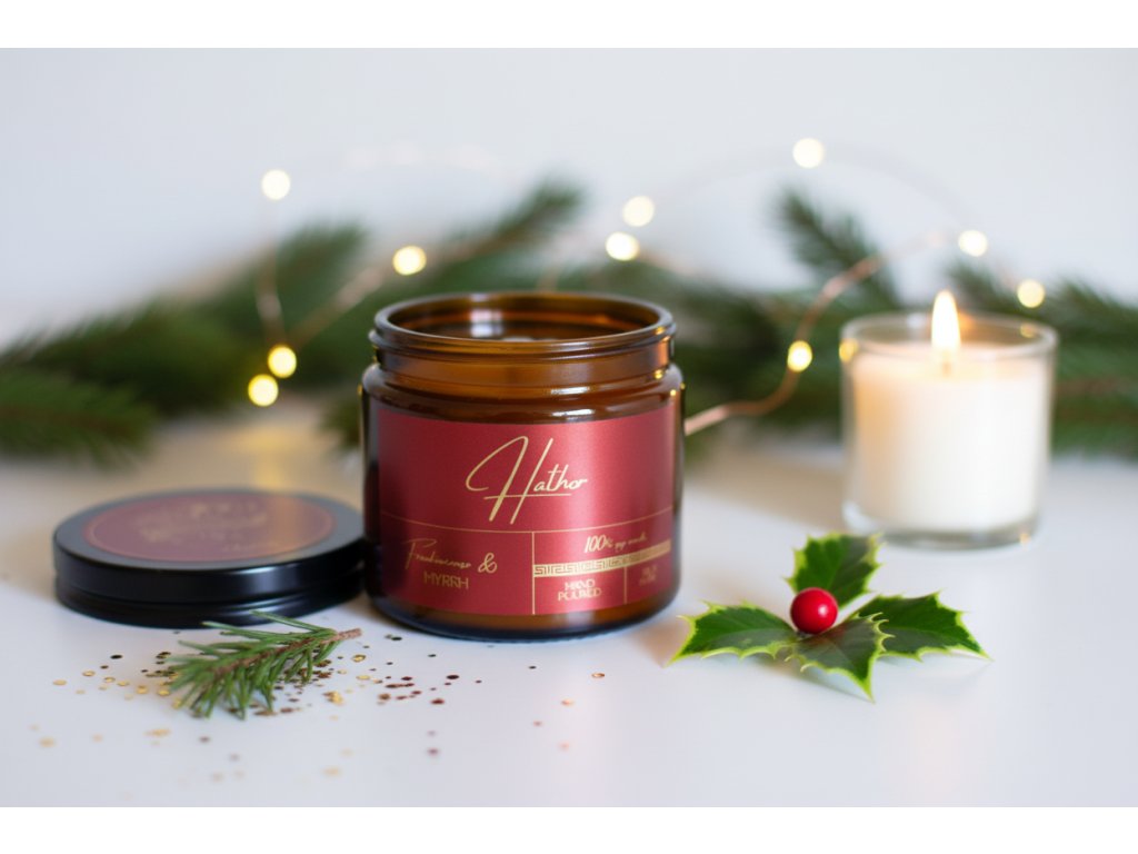 Hathor je egyptská bohyně lásky, plodnosti, smyslnosti a ochrany. Je klidná, hluboká a silná. Tato svíčka není lehká ani sladká. Je temná, hřejivá a hypnotická – přesně taková, jakou byste cítili v chrámech starého Egypta při rituálech s kadidlem a myrhou.